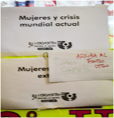 En cette occasion nous avons débattu de 69 thématiques dans plus de 100 ateliers. Chaque atelier a une coordinatrice, sa tâche est de gérer le débat, garantir que toutes les voix puissent être entendues. Des secrétaires sont choisies qui notent tout ce qui se discute dans l’atelier afin d’en dégager les conclusions.