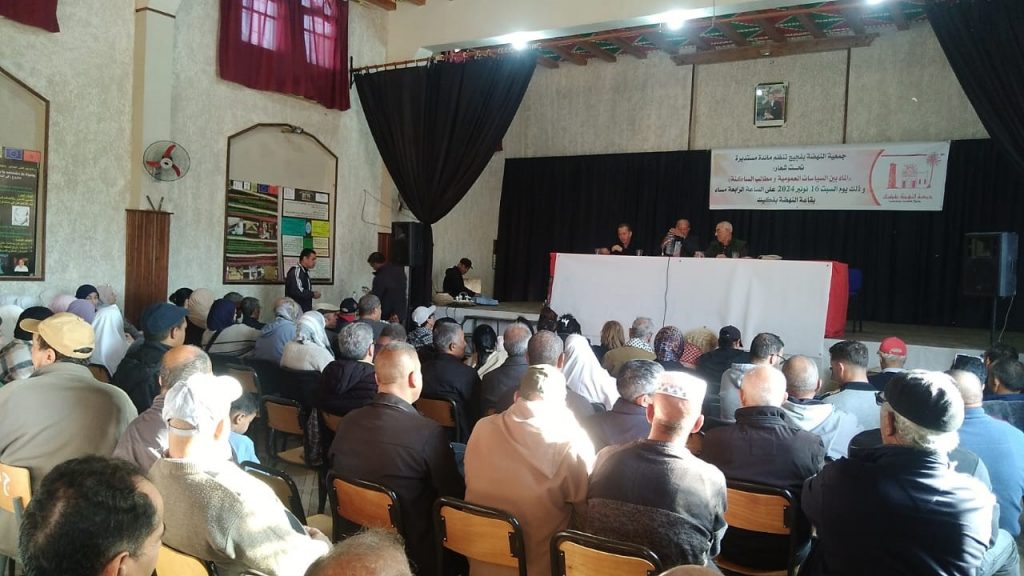 Dans la commune de Figuig, c’est une autre dynamique totalement différente qui s’est mise en place. Le conseil communal a voté le 26 octobre 2023 le refus d’adhérer au GCT. Le gouverneur de la province fera pression sur les membres du conseil pour qu’ils votent en faveur de l’adhésion lors d’une autre session extraordinaire le 1er novembre. Les habitants sont immédiatement descendus dans la rue pour dénoncer l’intervention du ministère de l’intérieur et pour exprimer leur ferme attachement à leur gestion de leurs ressources en eau. Le 16 mai 2024, neuf membres du conseil ont démissionné. Le ministère de l’intérieur s’est empressé d’organiser des élections partielles locales le 12 septembre 2024. Les militant·es du Hirak se sont mobilisés au nom du parti de la Fédération de la gauche démocratique et ont remporté à une écrasante majorité les neuf sièges vacants du conseil communal qui se compose désormais de 9 membres contre la SRM et 9 pour. La voix du président pourrait s’ajouter à ces derniers. Mais ce n’est pas encore gagné tant que le Hirak résiste.